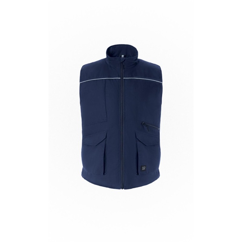 Αντιανεμικό γιλέκο εργασίας για πολλαπλές χρήσεις.Κλείνει μπροστά με φερμουάρ υψηλής αντοχής. Κάθετη τσέπη δεξιά στο στήθος με φερμουάρ. Δύο μεγάλες μπροστινές τσέπες με καπάκι και βέλκρο. Πίσω από αυτές, τσέπες φιλέτο. Επιπλέον τσέπη με φερμουάρ αριστερά. Μια εσωτερική τσέπη. Λάστιχα στην μέση για βέλτιστη εφαρμογή. Ανακλαστικός συρίτης στο στήθος και στην πλάτη.
