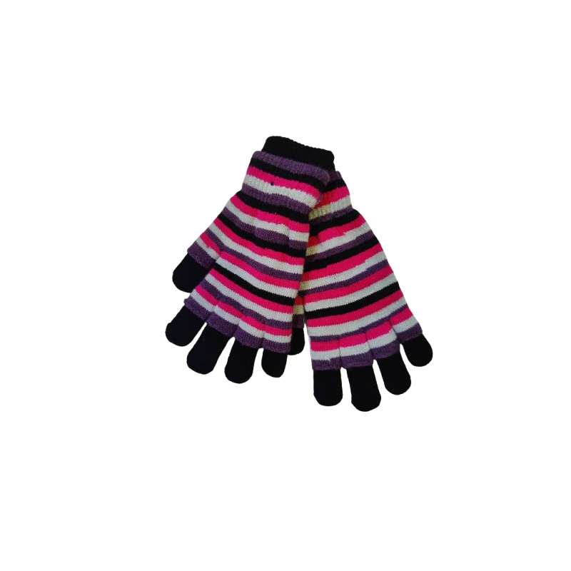 Γυναικεία γάντια διπλά Ριγέ Ελαστικά πλεκτά 100% ακρυλικά Stamion Μάυρο - Φούξια