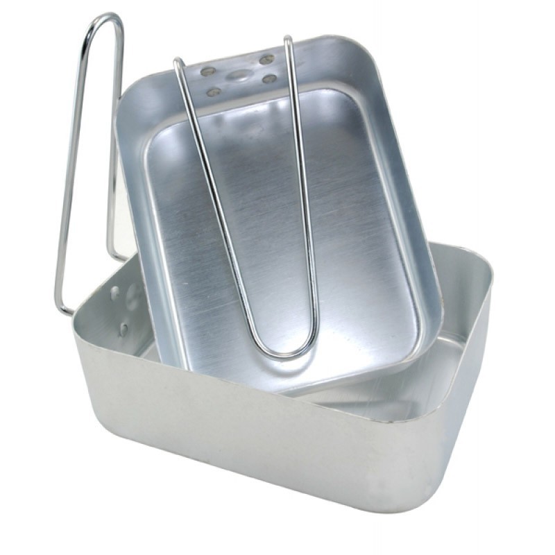 Η καραβάνα διπλή από αλουμίνιο είναι ένα πρακτικό και ανθεκτικό σκεύος, ιδανικό για υπαίθριες δραστηριότητες όπως το κάμπινγκ, η πεζοπορία ή η στρατιωτική χρήση. Κατασκευασμένη από ελαφρύ αλλά ανθεκτικό αλουμίνιο, προσφέρει εύκολη μεταφορά και γρήγορο καθάρισμα. Ο διπλός της σχεδιασμός επιτρέπει τη διαχωρισμένη αποθήκευση διαφορετικών τροφών, ενώ η αντοχή της στις φθορές την καθιστά ιδανική για μακροχρόνια χρήση σε σκληρές συνθήκες.