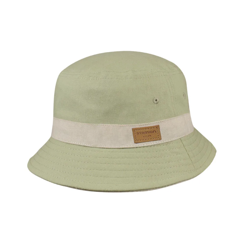 Καπέλο κώνος σε μοντέρνο σχέδιο με διχρωμία. Μαλακό και άνετο καπέλο με αυξημένη προστασία από τον ήλιο. Κατασκευάζεται από 55% λινό και 45% βαμβάκι