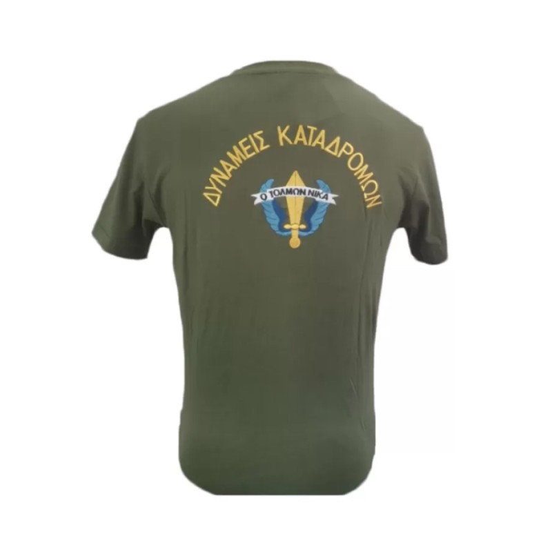 Κοντομάνικη μπλούζα Δυνάμεις Καταδρομών με τα προβλεπόμενα διακριτικά σήματα σε πράσινο χρώμα.
