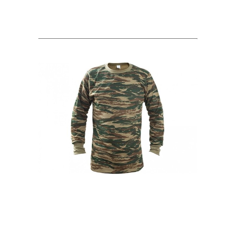 Το φούτερ με μακρύ μανίκι σε ελληνική παραλλαγή είναι ιδανικό για στρατιωτική χρήση ή υπαίθριες δραστηριότητες. Κατασκευασμένο από βαμβάκι, διαθέτει λεπτή κατασκευή με ελαφριά φλις επένδυση στο εσωτερικό για ζεστασιά και άνεση.