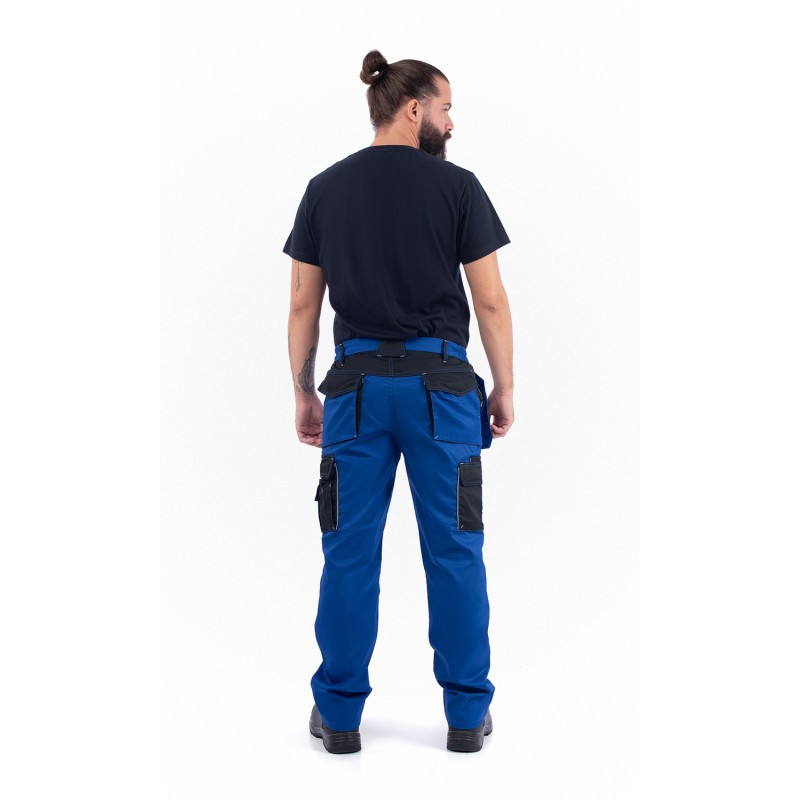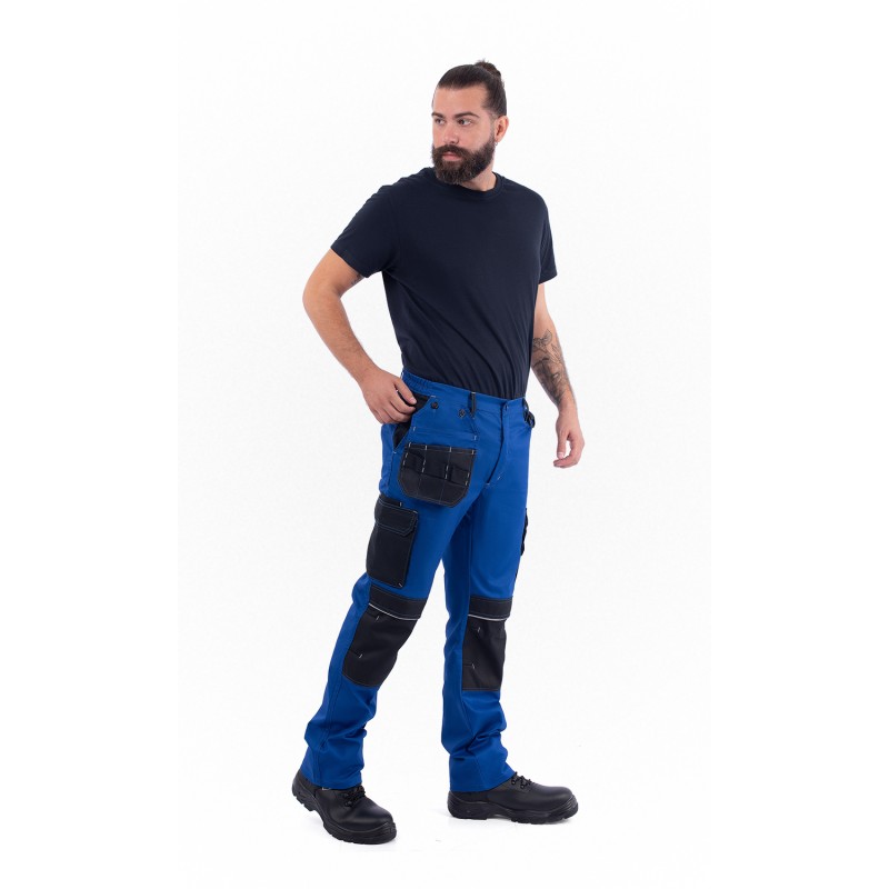 Κλείνει μπροστά με φερμουάρ υψηλής αντοχής και μεταλλικό κουμπί. Διπλή πλαϊνή τσέπη στον αριστερό μηρό και διπλή στο δεξιό μηρό που κλείνουν με καπάκι και velcro. Δύο τσέπες λοξές μπροστά και δύο τσέπες πίσω με καπάκι. Αποσπώμενη θήκη εργαλείων. Θήκη για επιγονατίδες. Πέντε θηλύκια για συγκράτηση ζώνης. Κρίκος πρόσδεσης εργαλείων. Διαθέσιμο σε 3 χρώματα. Ελληνικό προϊόν.