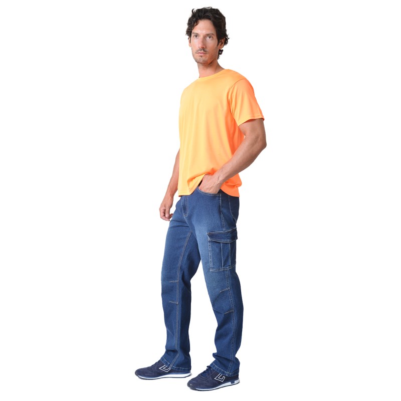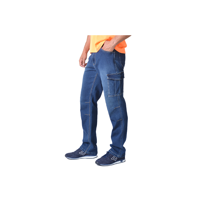 Παντελόνι ERGOLINE stretch τζiv σε μπλε χρώμα που κλείνει με κουμπί και φερμουάρ, με μια τσέπη πλαϊνή που κλείνει με Velcro και άλλη μια τσέπη με υποδοχή για κατσαβίδι-εργαλεία και στυλό.