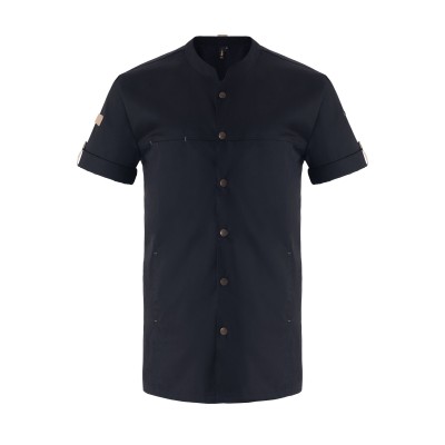 Ανακαλύψτε το επαγγελματικό σακάκι μάγειρα κοντομάνικο, ιδανικό για κουζίνες και χώρους εστίασης. Διαθέτει γιακά τύπου ΜΑΟ με ιμάντα για στήριξη ποδιάς, έξι μεταλλικά τρουκ μπροστά και τσέπες φιλέτο σε στήθος, μανίκια και πλαϊνά για πρακτικότητα. Η πλάτη με διαπνέον ύφασμα εξασφαλίζει άνεση και δροσιά, ενώ ο ιμάντας στο μανίκι προσφέρει εύκολη αποθήκευση εργαλείων. Με σκίσιμο στα πλαϊνά για άνετη εφαρμογή, αποτελεί ιδανική επιλογή για επαγγελματίες μάγειρες και σεφ.