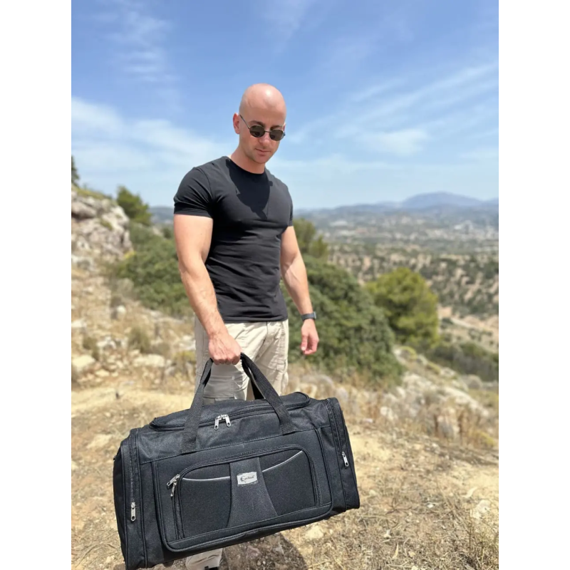 ▶ Με εξωτερικές πλαϊνές και εμπρός τσέπες που κλείνουν με φερμουάρ, θα έχετε εύκολη πρόσβαση στα απαραίτητα αντικείμενα σας, όπως κινητό τηλέφωνο, κλειδιά και πορτοφόλι. Ο ρυθμιζόμενος ιμάντας ώμου με επωμίδα θα σας εξασφαλίσει άνετη μεταφορά της τσάντας σας, ενώ οι διαστάσεις της (Μ x Υ x Π) 61cm x 32cm x 28cm και η χωρητικότητα της σε λίτρα 54 θα καλύψουν τις ανάγκες σας για μεγάλες και μικρές εξορμήσεις. Επιλέξτε την τσάντα μας για να ταξιδέψετε με στυλ και άνεση!