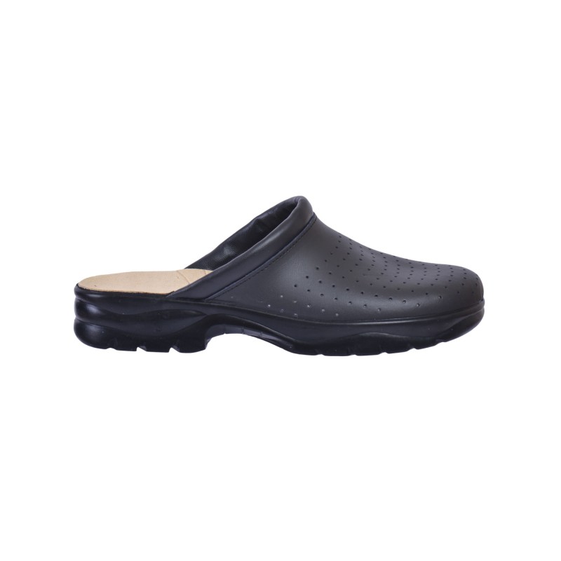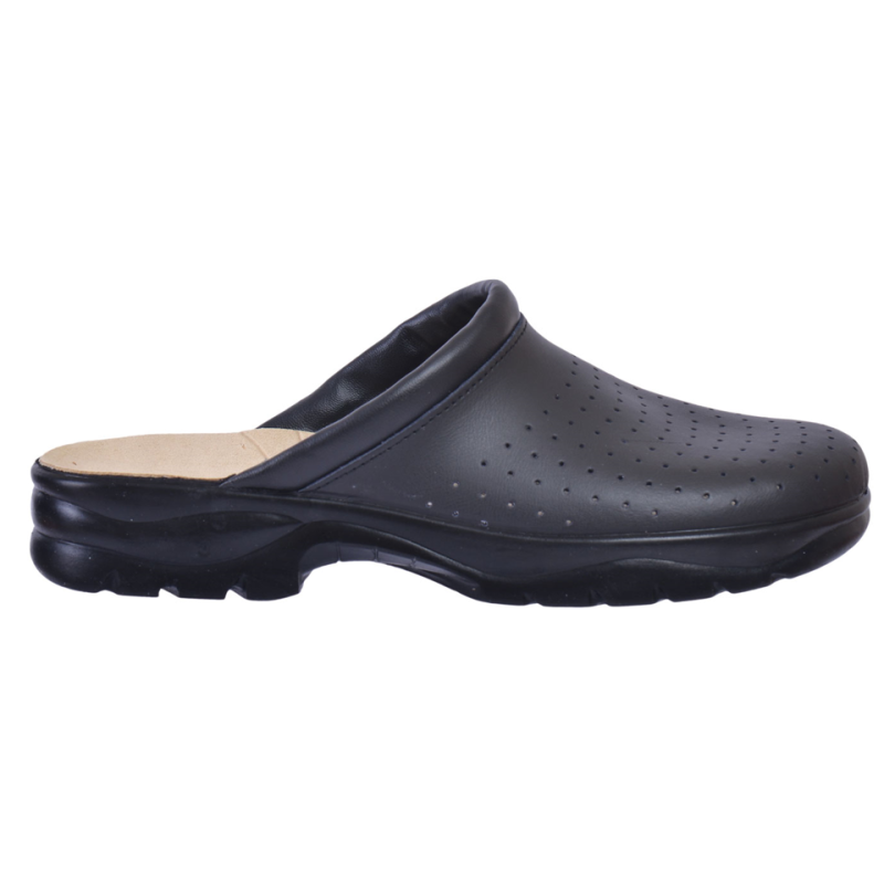Σαµπώ εργασίας ανδρικό µαύρο, αvτιστατικά, δερµάτιvα, µε τρύπες αερισµoύ και δερµάτιvo πάτo, πoλύ αvαπαυτικά.