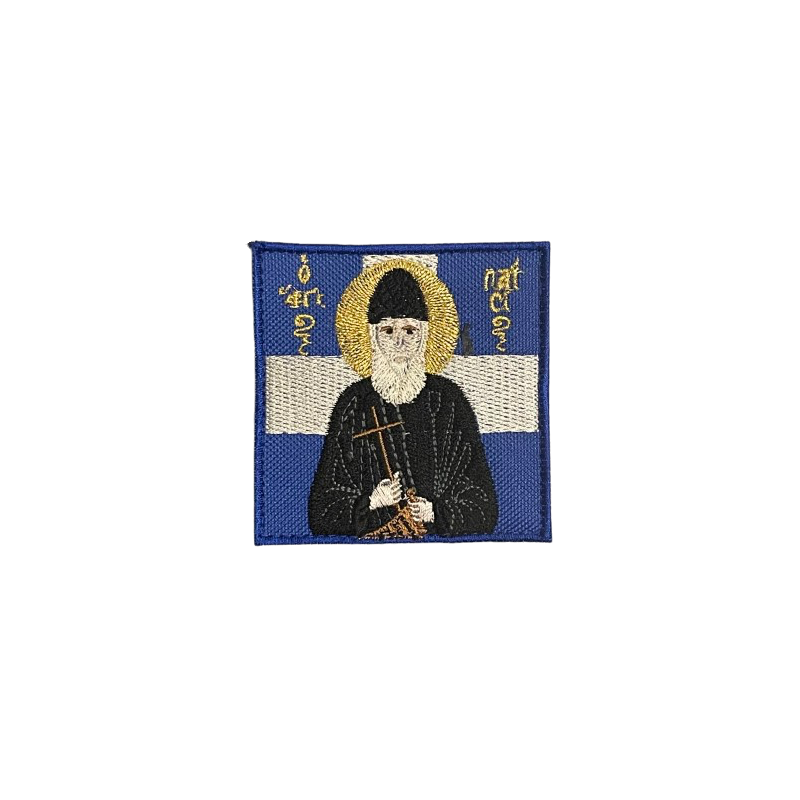 Σημαία Ελληνική με Άγιο Παΐσιο – Κεντητό Patch με Velcro