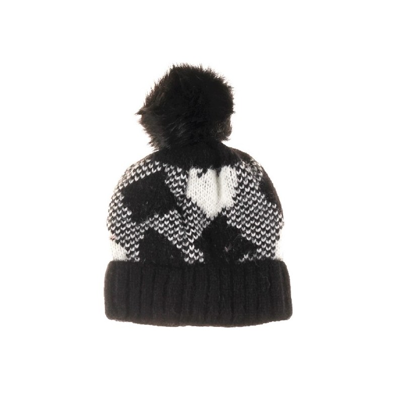 Σκούφος Γυναικείος πλεκτός με επένδυση Γούνα και Pom Pom Μάυρο/Λευκό