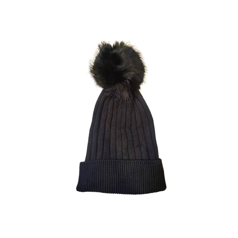 Σκούφος Unisex πλεκτός με αφαιρούμενο Pom Pom Μάυρο