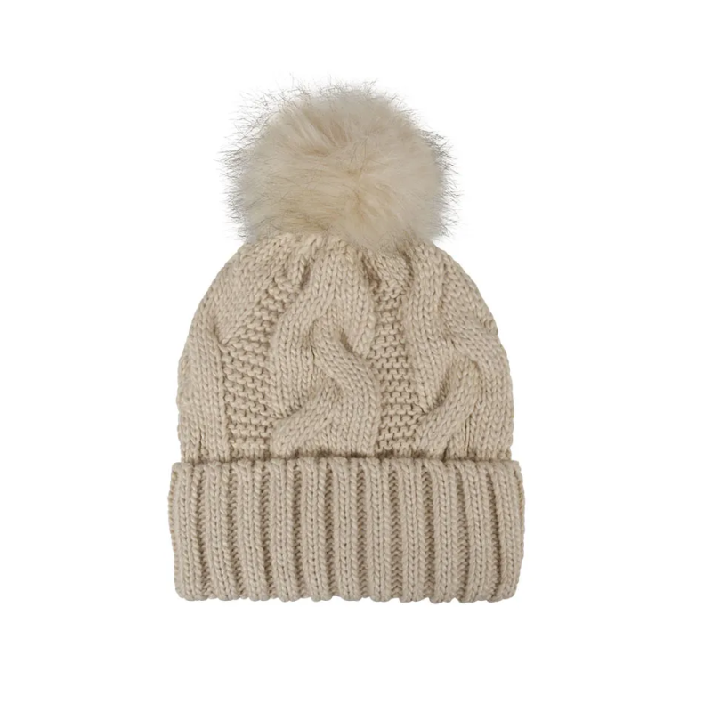 Γυναικείο σκουφί μονόχρωμο με μοντέρνα πλέξη και pom pom Μπέζ