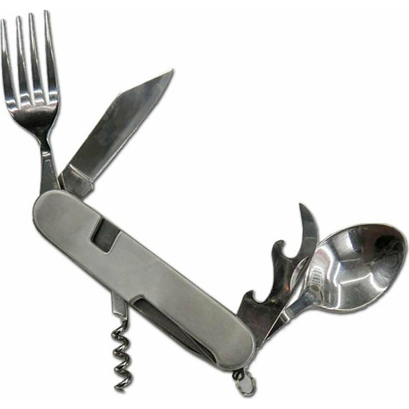 Έχετε εκτός από μαχαίρι, πιρούνι,κουτάλι ,ανοιχτήρι για κονσέρβες,ανοιχτήρι για μπουκάλια, χρησιμεύει κάθε στιγμή οπουδήποτε το χρειάζεστε!