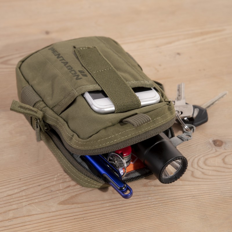 Διαθέτει δύο θέσεις εξωτερικά με επένδυση Fleece Tricot για τοποθέτηση κινητού διαστάσεων 15 x 7 εκ. και μια μικρότερη διαστάσεων 13 x 2,5 εκ.